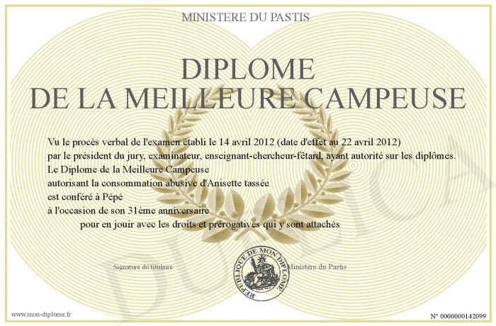 Envoyez par email votre Diplôme de la Meilleure Campeuse personalisé