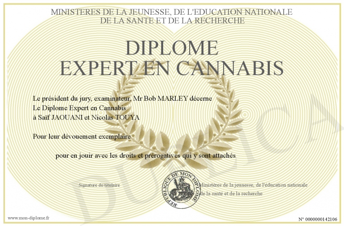 Envoyez par email votre Diplôme Expert en Cannabis personalisé