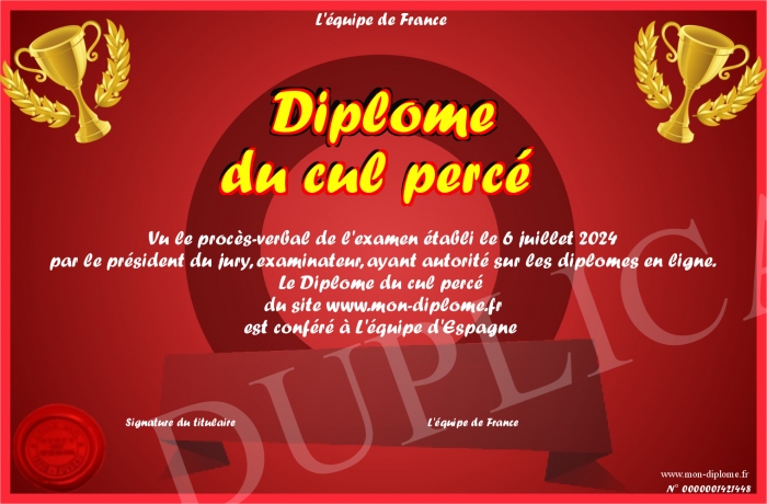Envoyez par email votre Diplôme du cul percé personalisé