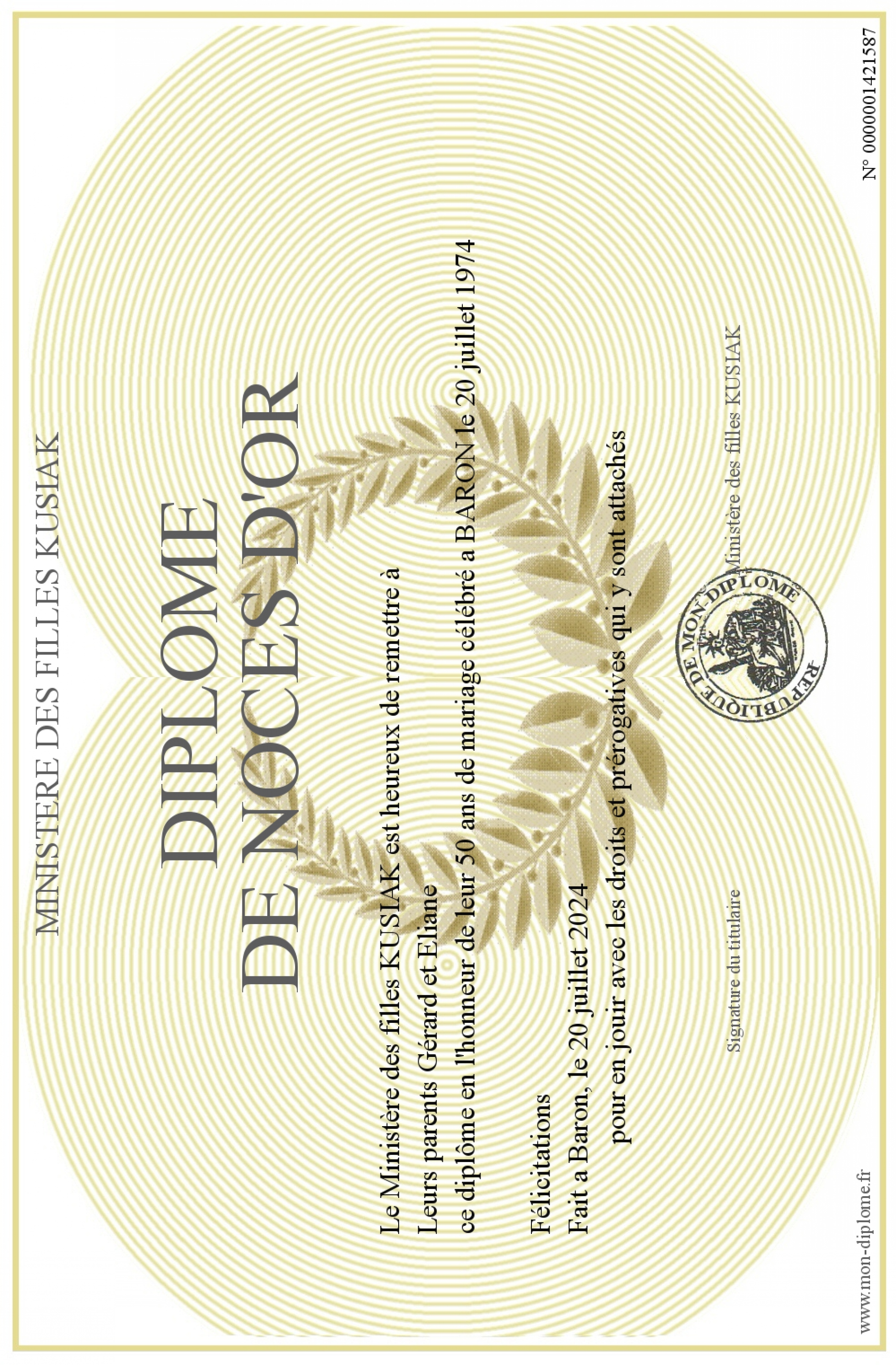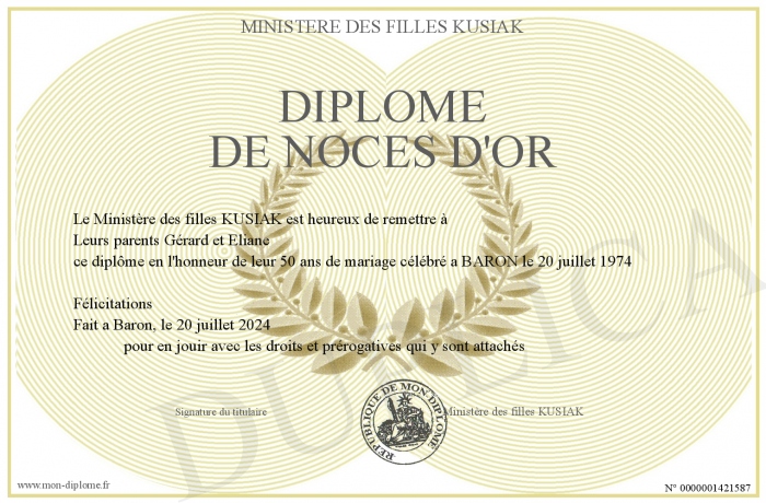 Envoyez par email votre Diplôme de noces d'or personalisé