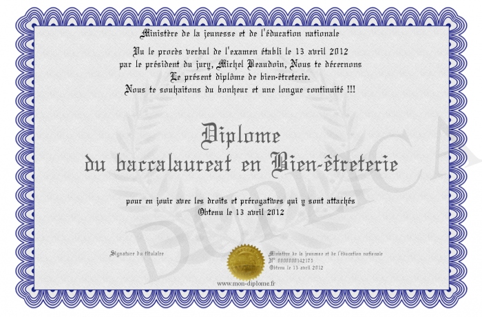 Envoyez par email votre Diplôme du baccalaureat en Bien-êtreterie personalisé