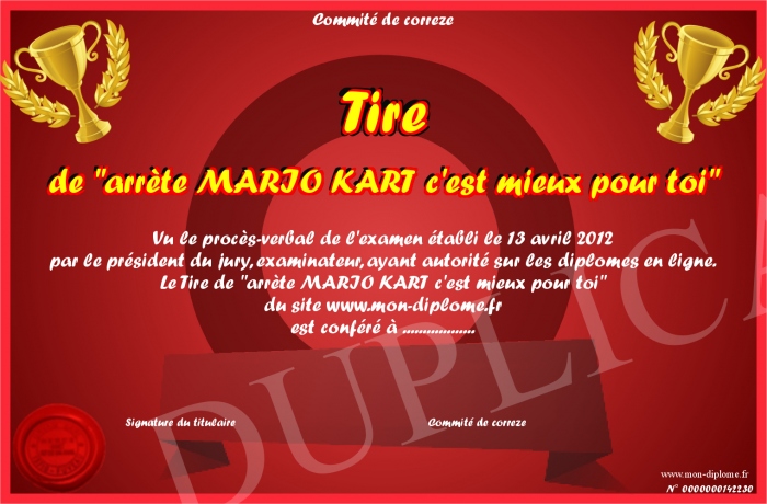 Envoyez par email votre Tire de -arrète MARIO KART c'est mieux pour toi- personalisé