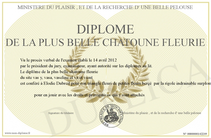 Envoyez par email votre Diplôme de la plus belle chatoune fleurie personalisé