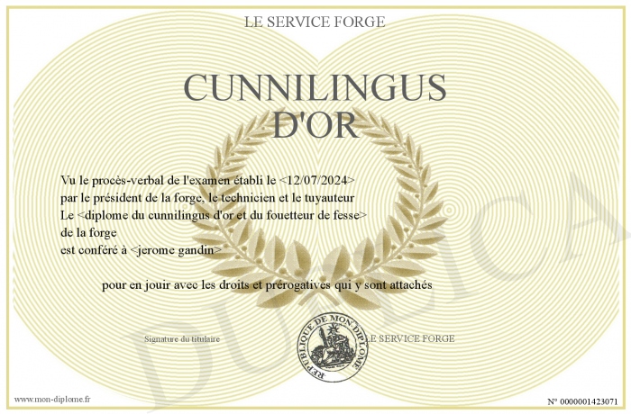 Envoyez par email votre CUNNILINGUS D'OR personalisé