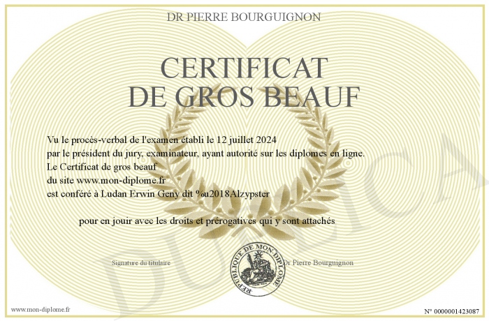 Envoyez par email votre Certificat de gros beauf personalisé