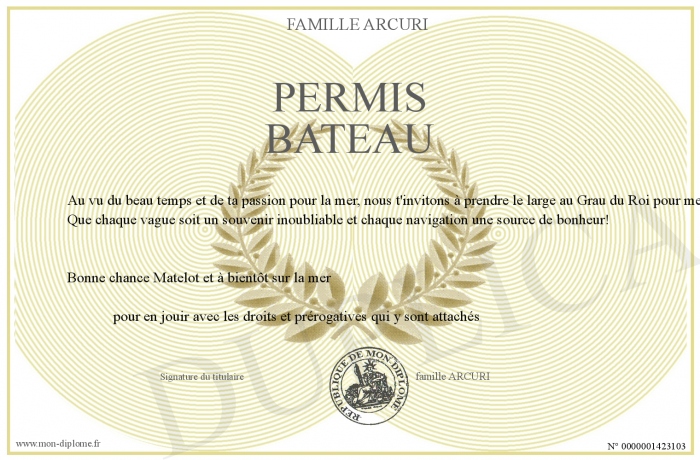 Envoyez par email votre permis bateau personalisé