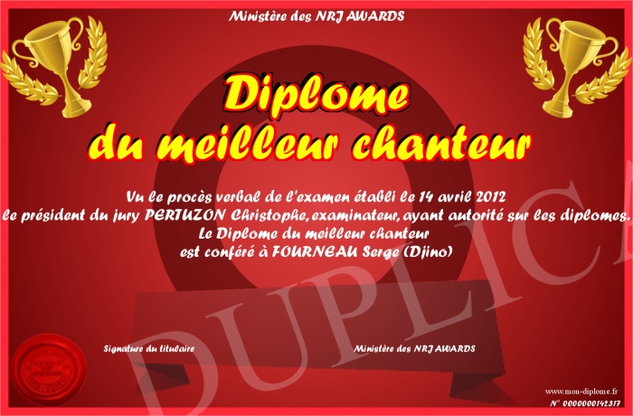 Envoyez par email votre Diplôme du meilleur chanteur personalisé