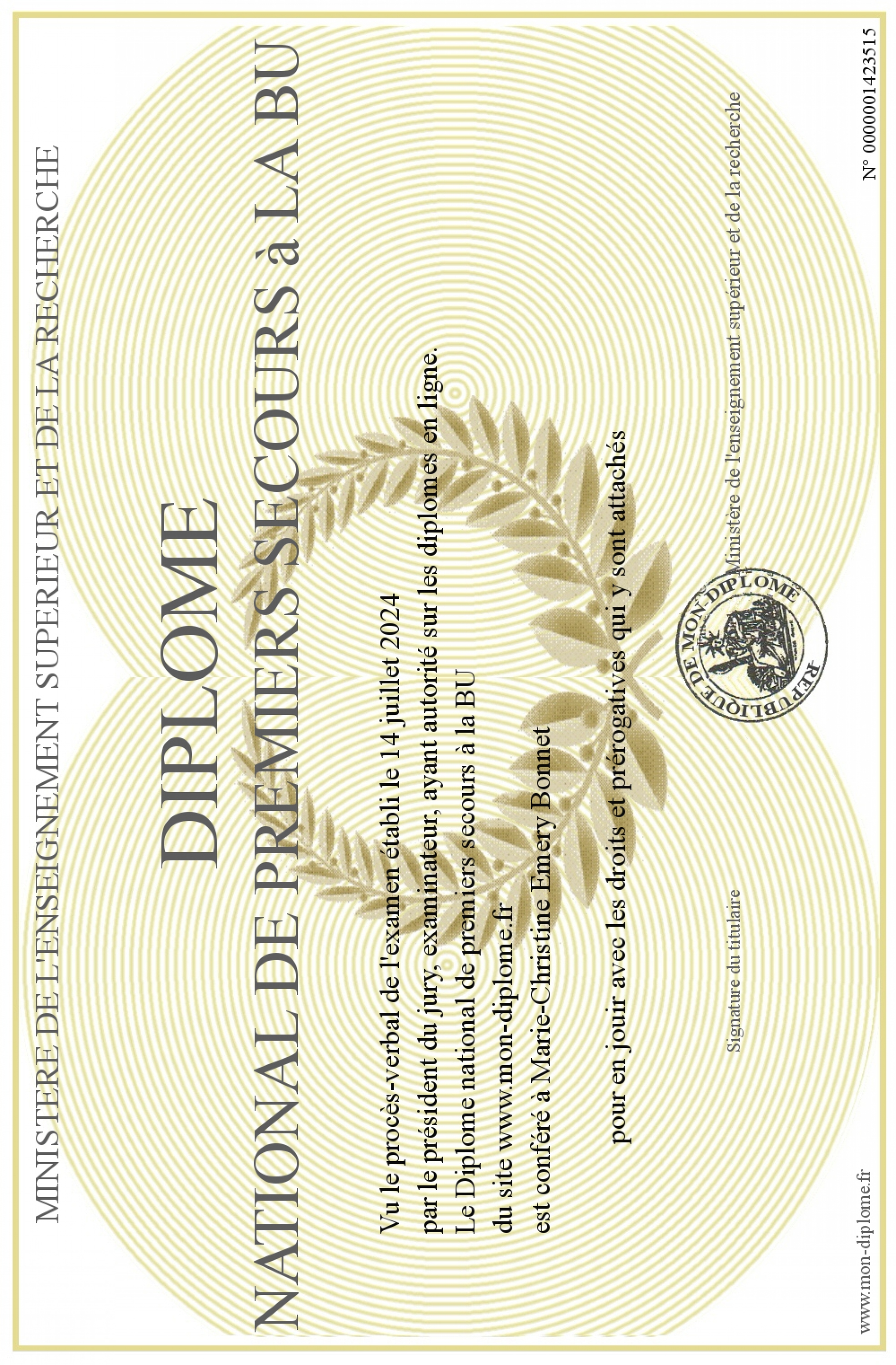 Envoyez par email votre Diplôme national de premiers secours à la BU personalisé