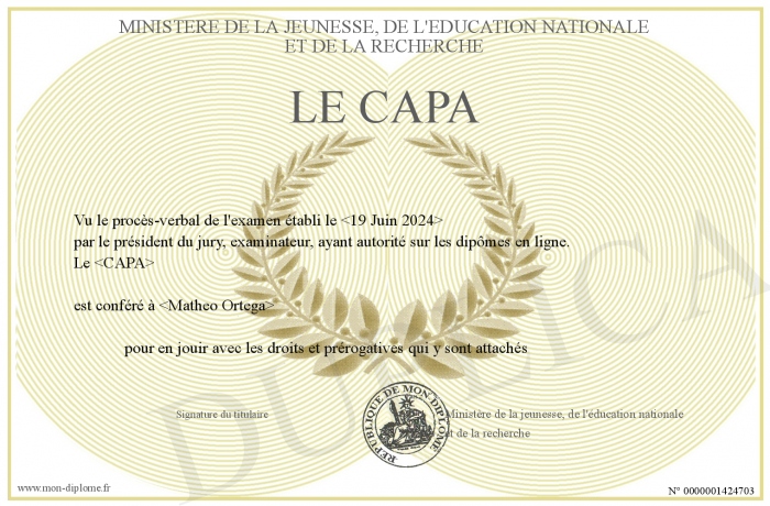Achetez ce diplome sous forme de NFT !!