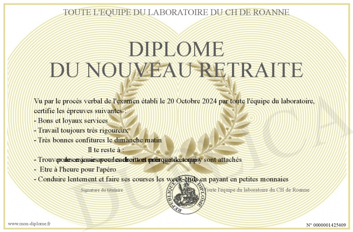 Envoyez par email votre Diplôme du nouveau retraité personalisé