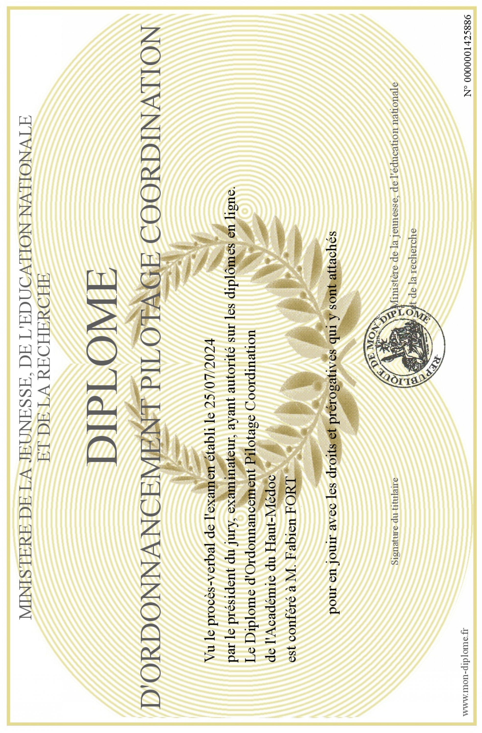 Envoyez par email votre Diplôme d'Ordonnancement Pilotage Coordination personalisé