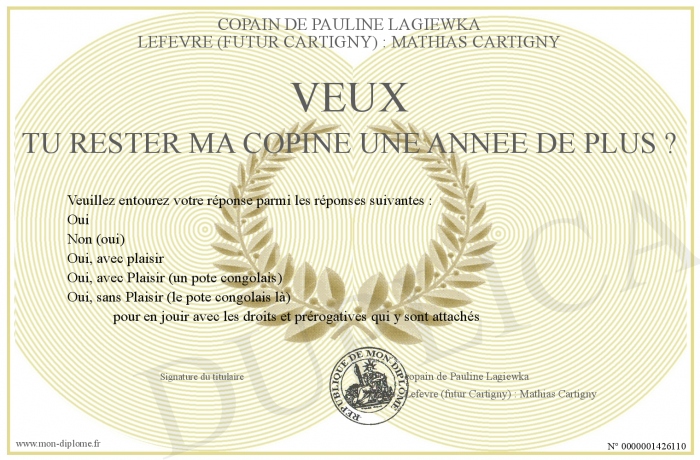 Envoyez par email votre Veux tu rester ma copine une année de plus ? personalisé