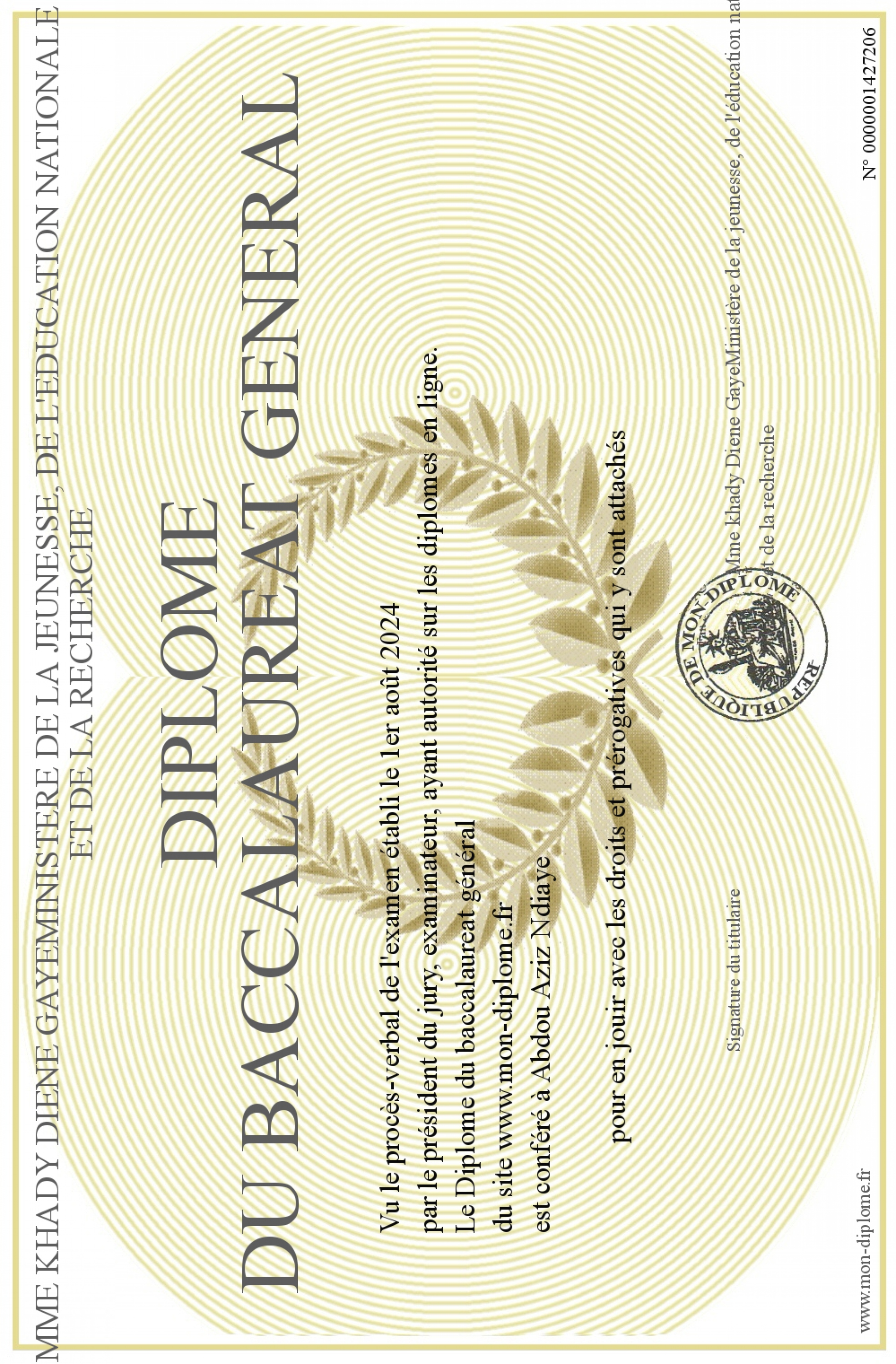 Envoyez par email votre Diplôme du baccalaureat général personalisé