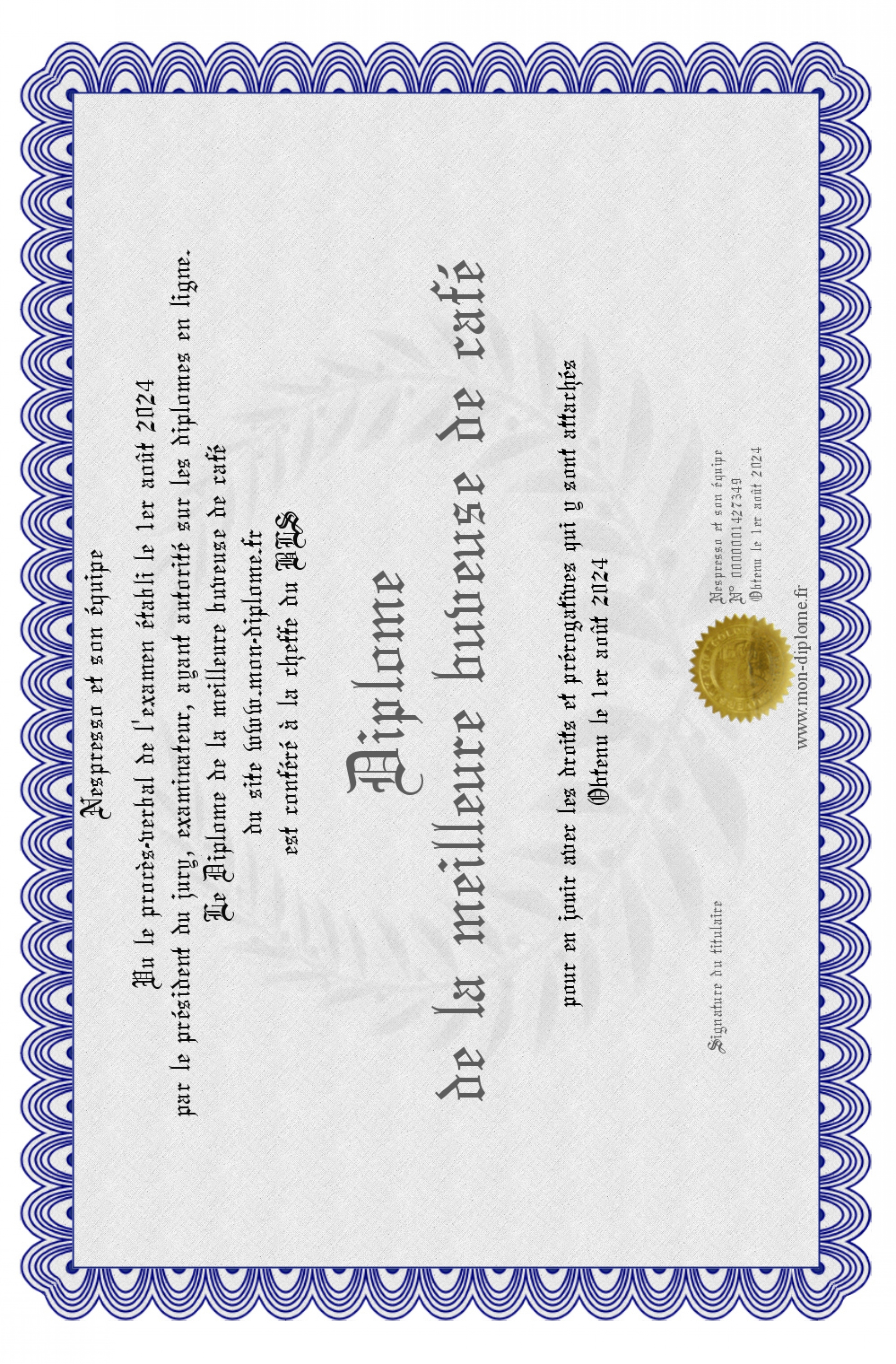 Envoyez par email votre Diplôme de la meilleure buveuse de café personalisé
