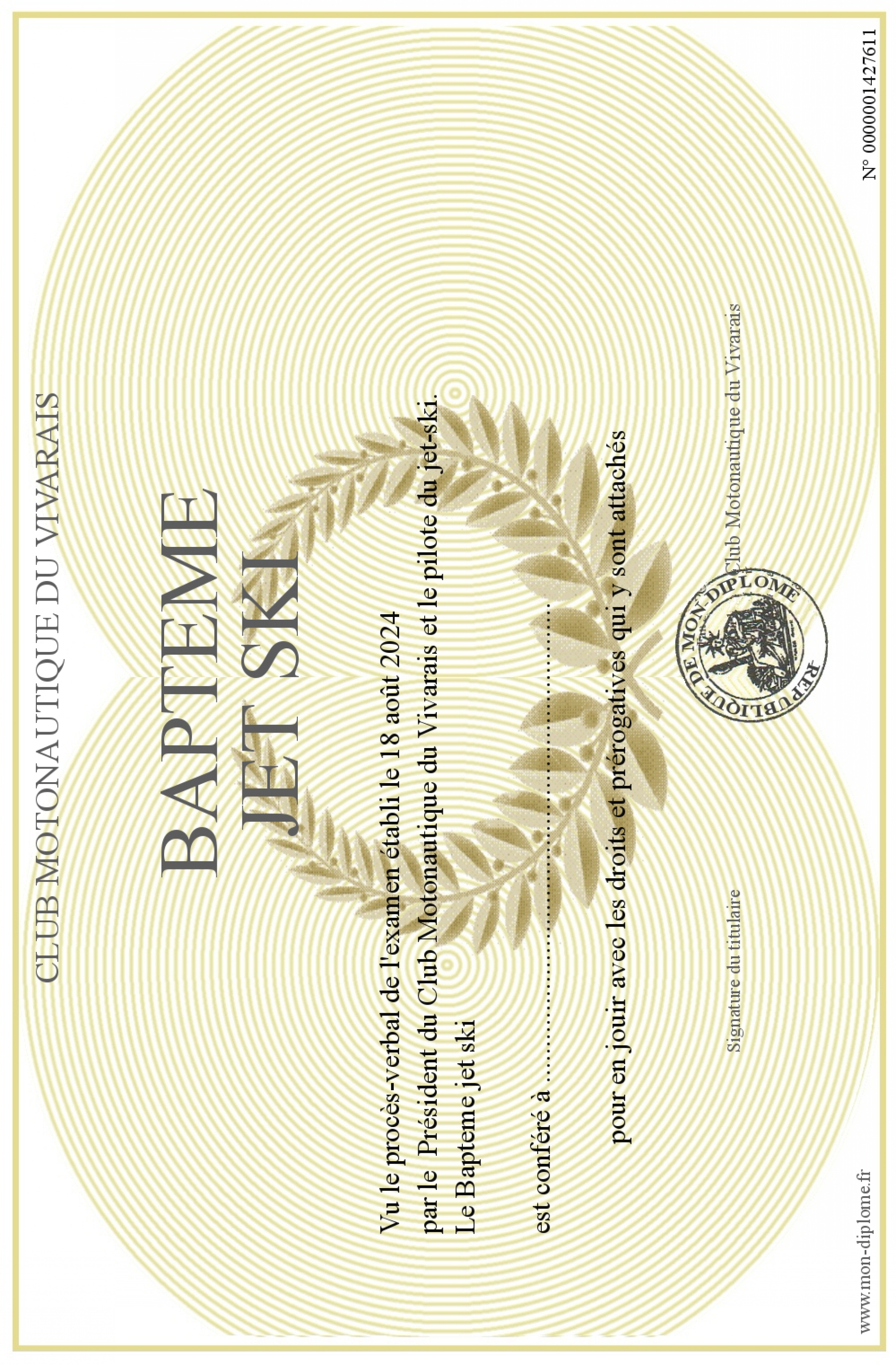 Envoyez par email votre Bapteme jet ski personalisé