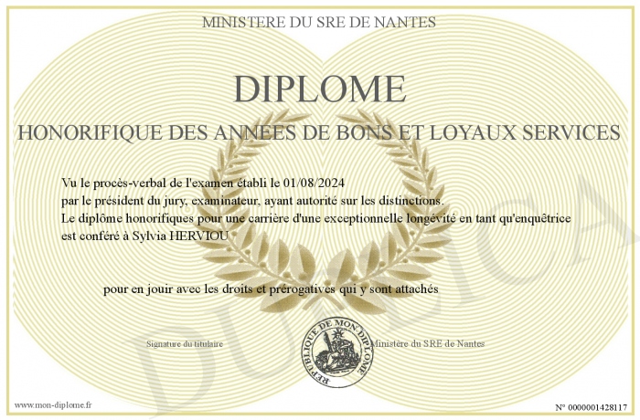 Envoyez par email votre Diplôme honorifique des années de bons et loyaux services personalisé