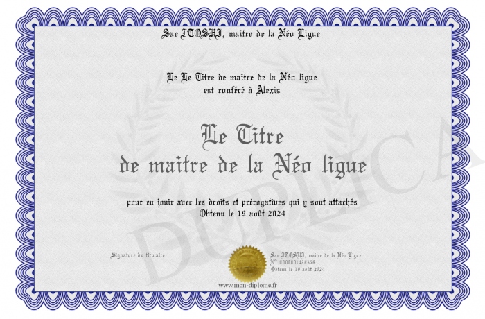 Envoyez par email votre Le Titre de maitre de la Néo ligue personalisé