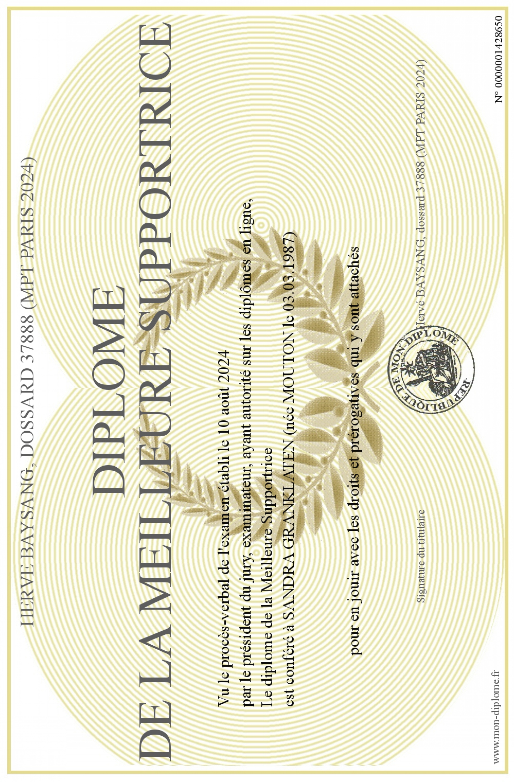 Envoyez par email votre diplôme de la Meilleure Supportrice personalisé