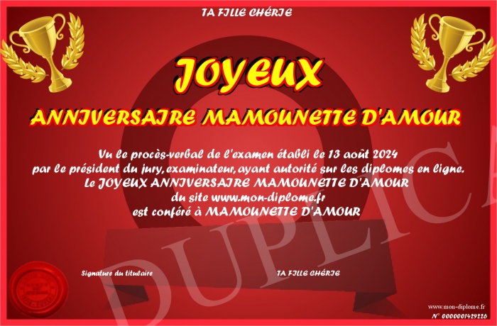 Envoyez par email votre JOYEUX ANNIVERSAIRE MAMOUNETTE D'AMOUR personalisé