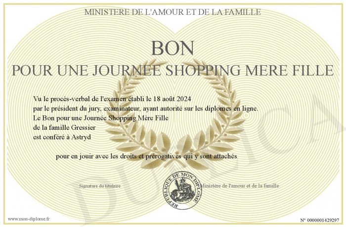 Envoyez par email votre Bon pour une Journée Shopping Mère Fille personalisé