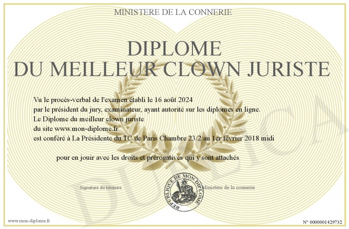 Envoyez par email votre Diplôme du meilleur clown juriste personalisé