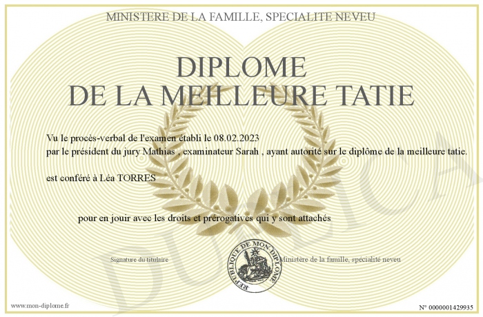 Envoyez par email votre Diplôme de la meilleure tatie personalisé