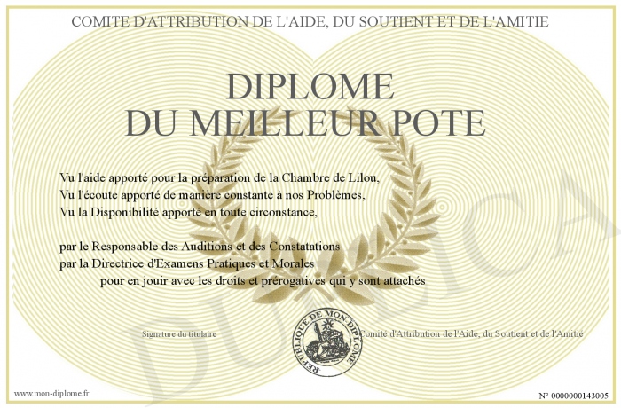 Envoyez par email votre Diplôme du Meilleur Pote personalisé