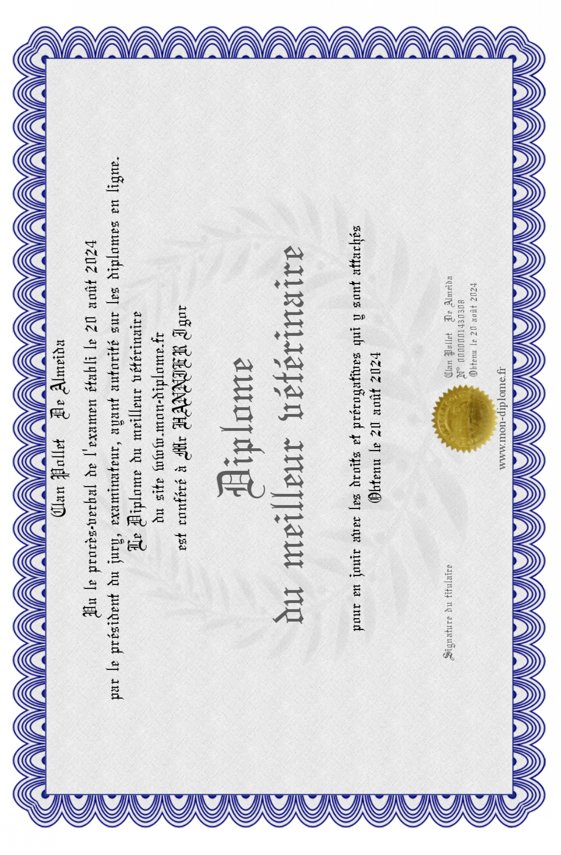 Envoyez par email votre Diplôme du meilleur vétérinaire personalisé