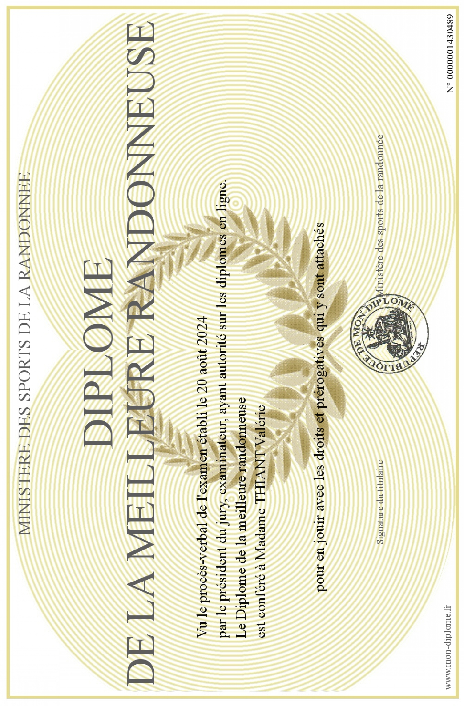 Envoyez par email votre Diplôme de la meilleure randonneuse personalisé