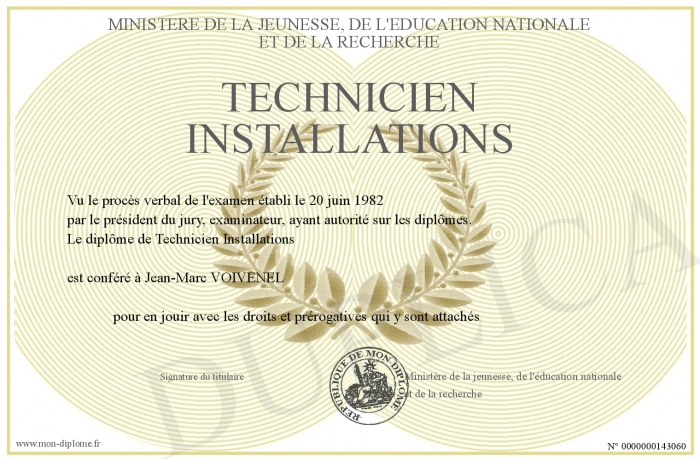 Envoyez par email votre Technicien Installations personalisé