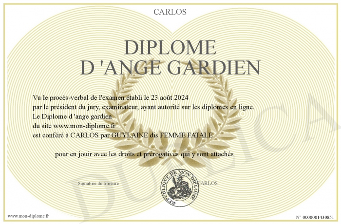 Envoyez par email votre Diplôme d 'ange gardien personalisé