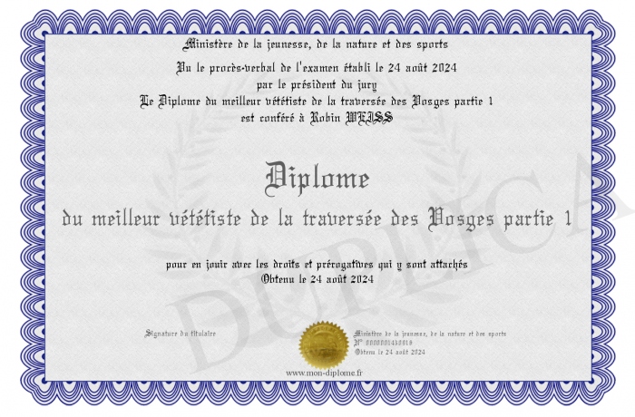 Envoyez par email votre Diplôme du meilleur vététiste de la traversée des Vosges partie 1 personalisé