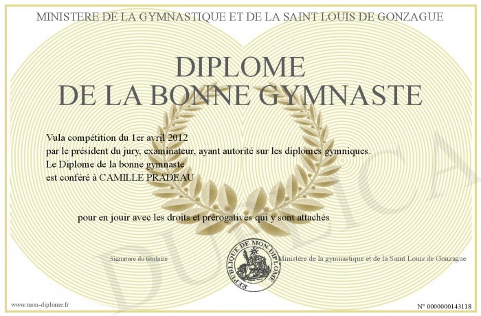 Envoyez par email votre Diplôme de la bonne gymnaste personalisé