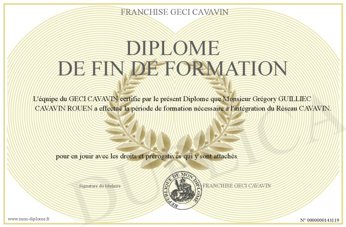 Envoyez par email votre DIPLOME DE FIN DE FORMATION personalisé