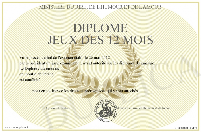 Envoyez par email votre Diplome jeux des 12 mois personalisé