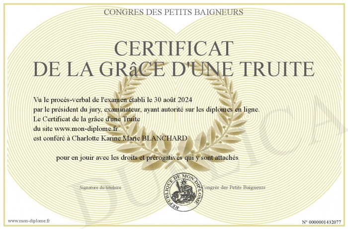 Envoyez par email votre Certificat de la grâce d'une Truite personalisé