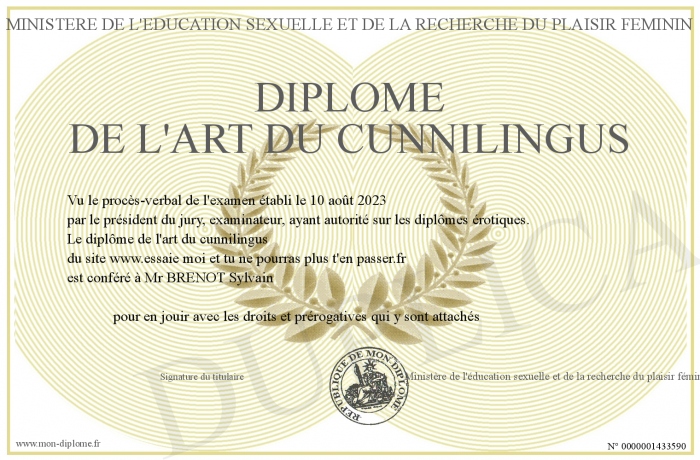 Envoyez par email votre Diplôme de l'art du cunnilingus personalisé