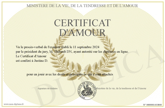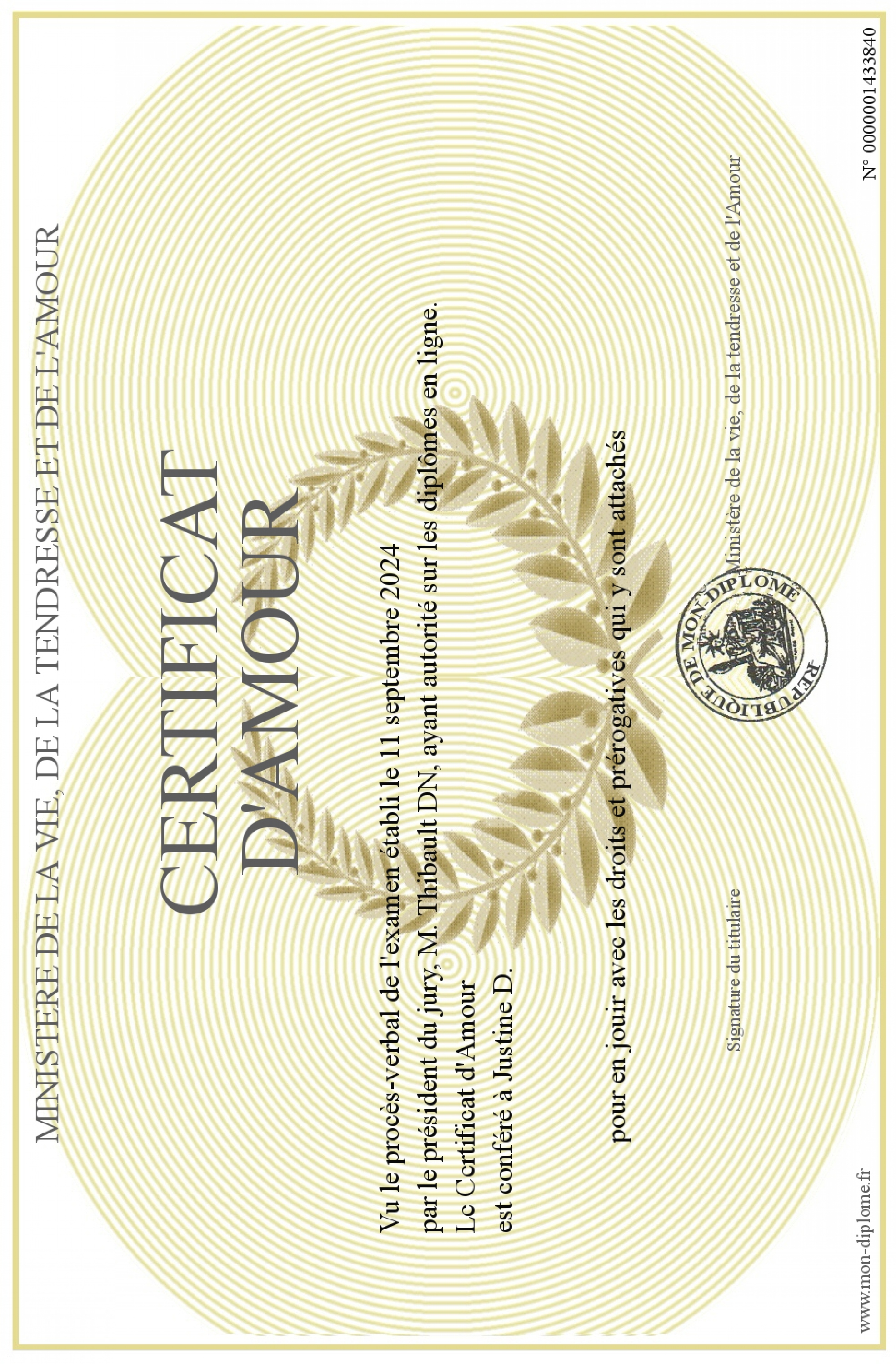 envoyé par le Ministère de la vie, de la tendresse et de l'Amour !