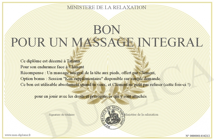 Envoyez par email votre Bon pour un massage intégral personalisé