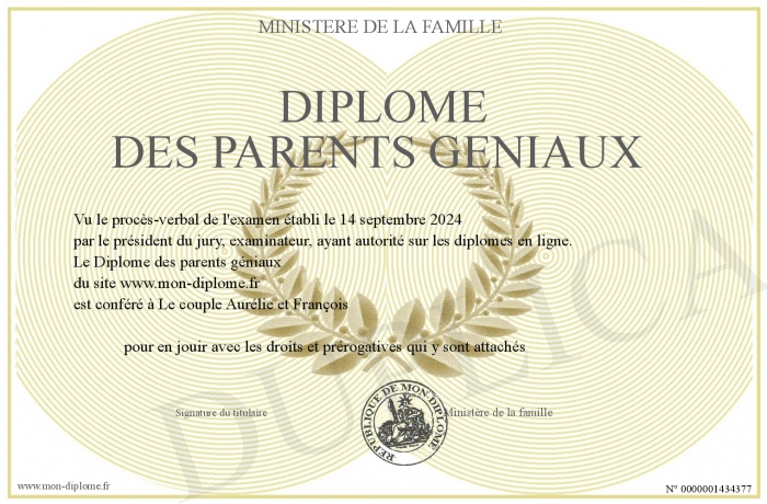 Envoyez par email votre Diplôme des parents géniaux personalisé