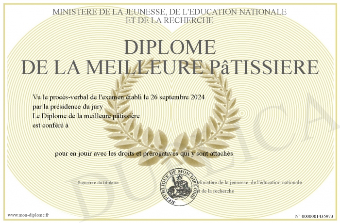 Envoyez par email votre Diplôme de la meilleure pâtissière personalisé