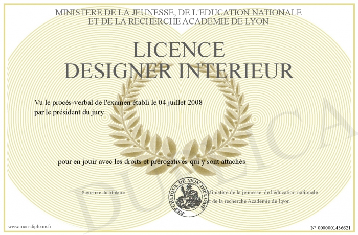 Envoyez par email votre LICENCE DESIGNER INTERIEUR personalisé