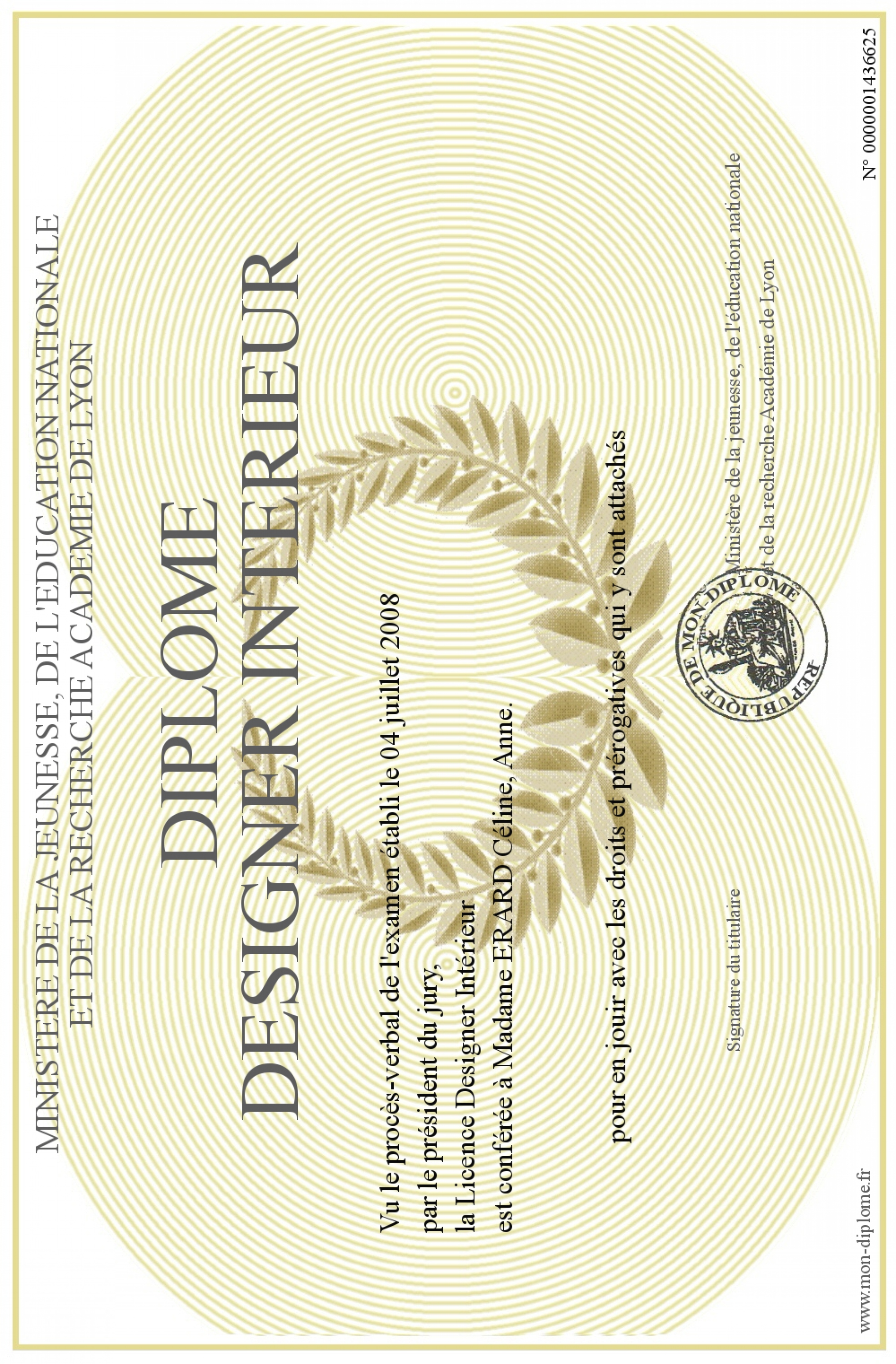 Envoyez par email votre Diplôme DESIGNER INTERIEUR personalisé