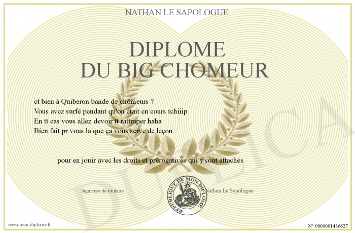 Envoyez par email votre Diplôme du big chômeur personalisé
