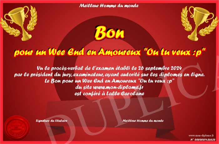 Envoyez par email votre Bon pour un Wee End en Amoureux -Ou tu veux :p- personalisé