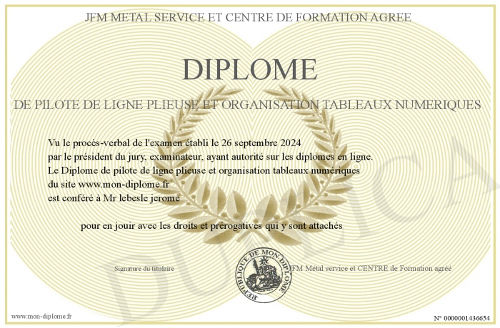 Envoyez par email votre Diplôme de pilote de ligne plieuse et organisation tableaux numériques personalisé