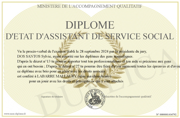 Envoyez par email votre Diplôme d'Etat d'assistant de service social personalisé