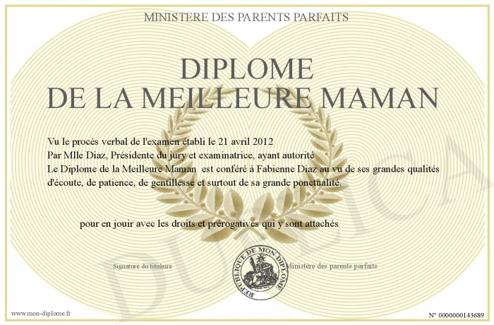 Envoyez par email votre Diplôme de la Meilleure Maman personalisé