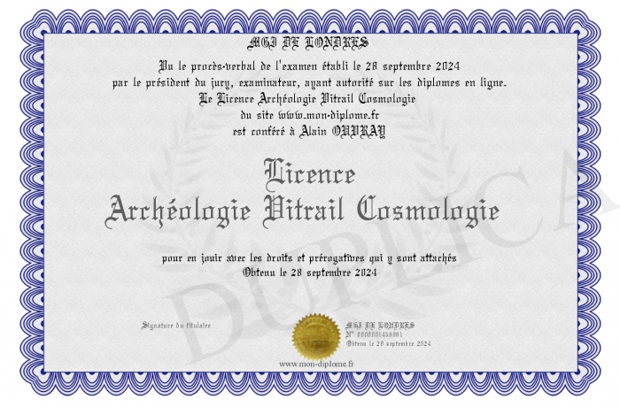 Envoyez par email votre Licence Archéologie Vitrail Cosmologie personalisé