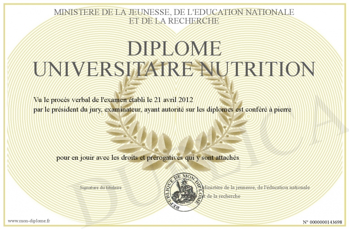 Envoyez par email votre Diplôme Universitaire Nutrition personalisé